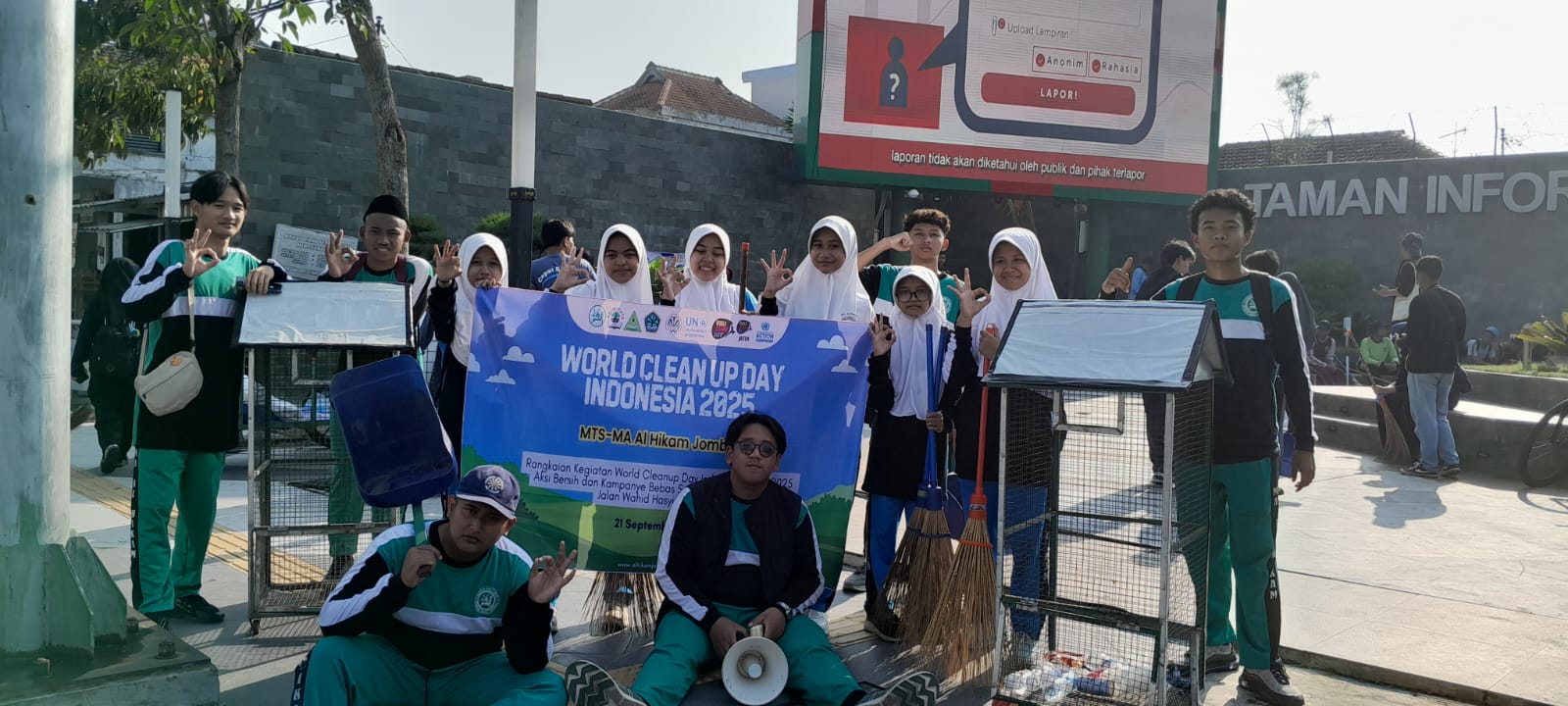 JOMBANG, 21 September 2025 - Puluhan siswa dari berbagai sekolah di Jombang, termasuk 12 siswa-siswi dari MTs Al Hikam Jatirejo dan MA Al Hikam Jatirejo, menunjukkan kepeduliannya terhadap lingkungan dengan berpartisipasi dalam kegiatan World Cleanup Day Indonesia tahun 2025. Acara yang diinisiasi oleh Dinas Lingkungan Hidup (DLH) Kabupaten Jombang ini digelar di area Car Free Day, di sepanjang Jalan KH Wahid Hasyim, pada hari Minggu, 21 September 2025.