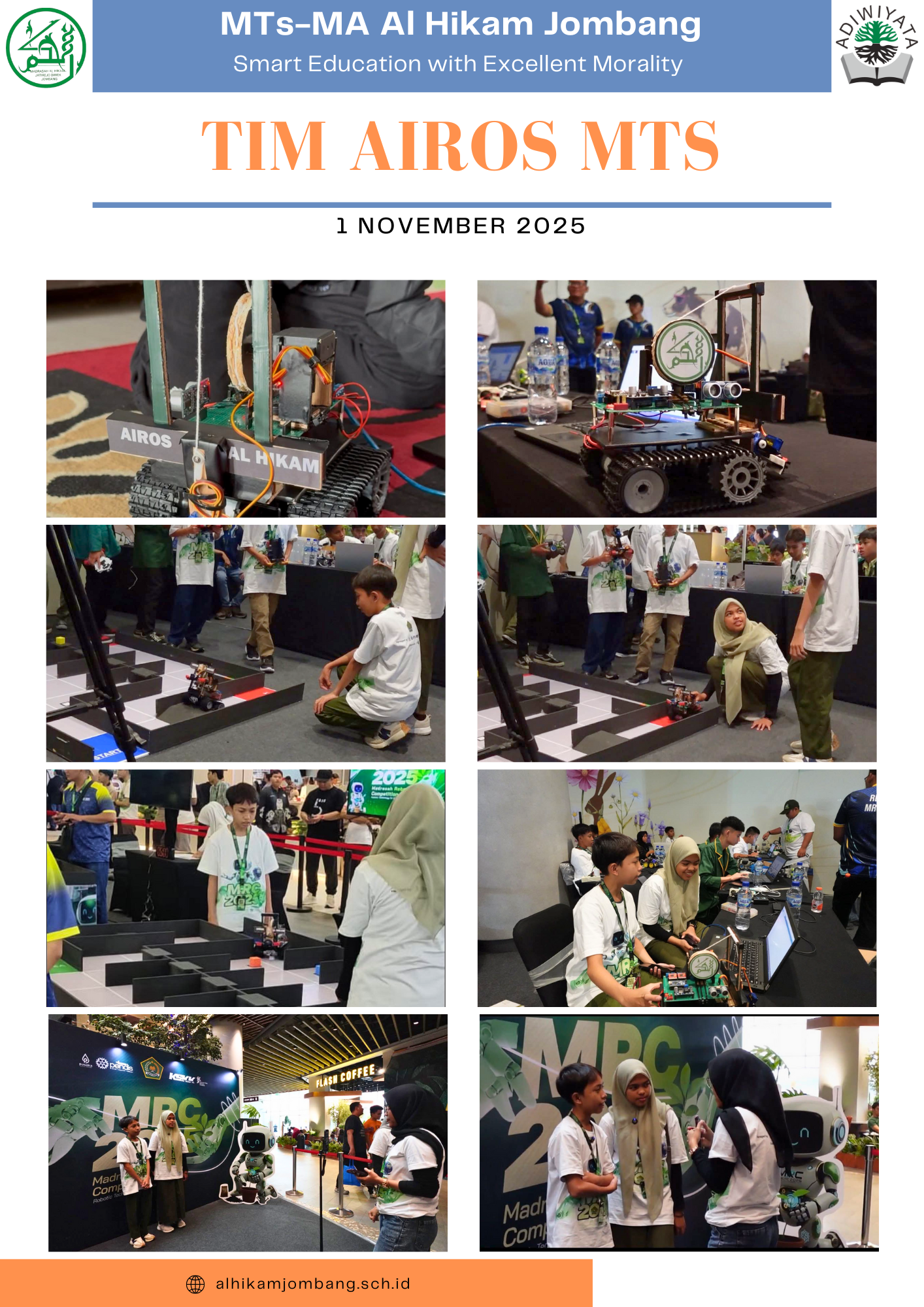 Jombang, 4 November 2025 — Kabar membanggakan datang dari MTs Al Hikam Jombang. Tim robotik andalan mereka, AIROS, berhasil menorehkan prestasi gemilang dengan meraih Peringkat Ke-5 Nasional dalam ajang bergengsi Madrasah Robotic Competition (MRC) 2025 kategori Mobile Robot Labirin MTs.
