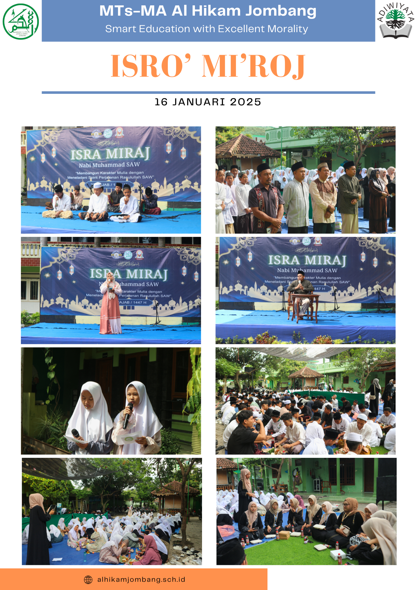Jombang, 16 Januari 2025 – Keluarga besar Madrasah Tsanawiyah (MTs) dan Madrasah Aliyah (MA) Al Hikam Jombang menggelar peringatan Isro’ Mi’roj Nabi Muhammad SAW 1447 H dengan khidmat pada Jumat (16/01/2026). Bertempat di halaman utama madrasah, acara ini menjadi momentum spiritual bagi seluruh warga sekolah untuk memperkuat tali silaturahmi dan meningkatkan kualitas ibadah.