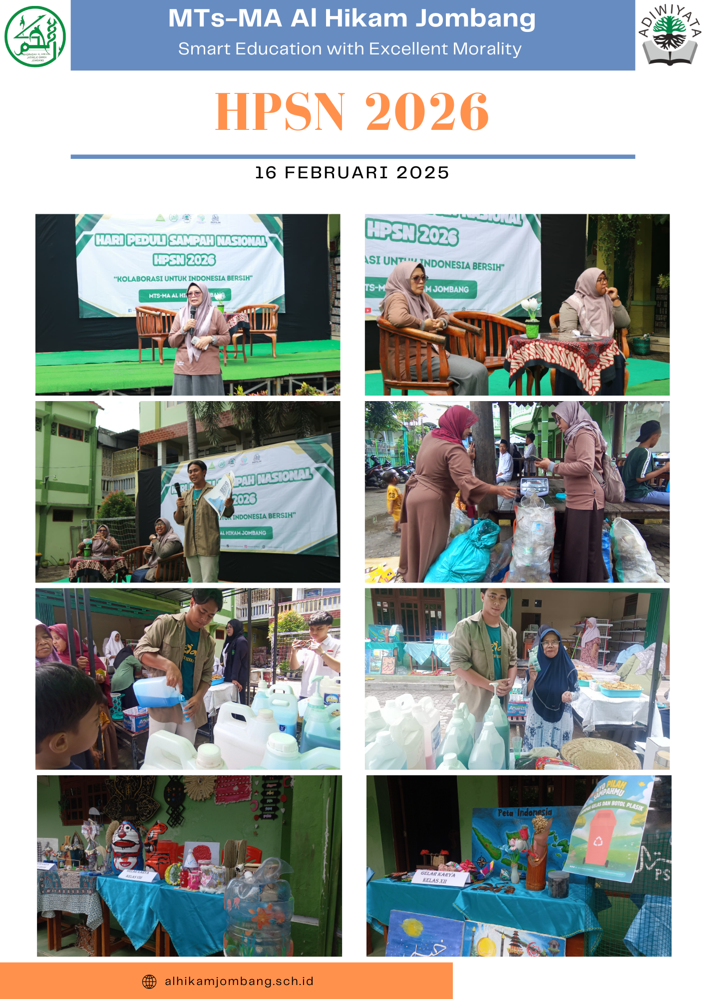 Jombang, 21 februari 2026 – Dalam rangka memperingati Hari Peduli Sampah Nasional (HPSN) 2026, Kompleks Pendidikan MTs-MA Al Hikam Diwek, Jombang, menggelar rangkaian aksi lingkungan yang inovatif dan edukatif. Mengusung semangat "Madrasah Minim Sampah", kegiatan ini melibatkan sinergi antara siswa, guru, wali murid, hingga masyarakat sekitar.